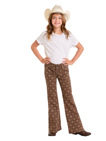 Girls Rock & Roll Cowgirl Brown Horseshoe Print Jeans