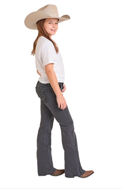 Girl's Black Horseshoe Embroidered Bootcut Denim
