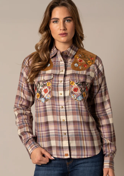Bailey Embroidered Yoke Shirt is a true statement piece that blends Western artistry with modern design. Featuring floral embroidered ultrasuede yokes and pockets, it’s elevated further with whip-stitch outlining and distinctive horn and brass snap buttons. The soft Tencel construction gives the shirt a luxurious drape and a breathable feel, making it as comfortable as it is eye-catching. Whether you’re heading to a night out, a special event, or simply want to elevate your everyday Western wardrobe, Bailey offers a bold yet timeless style. Pair it with jeans and boots for a classic ranch-to-town look, or layer it under a jacket for extra refinement.