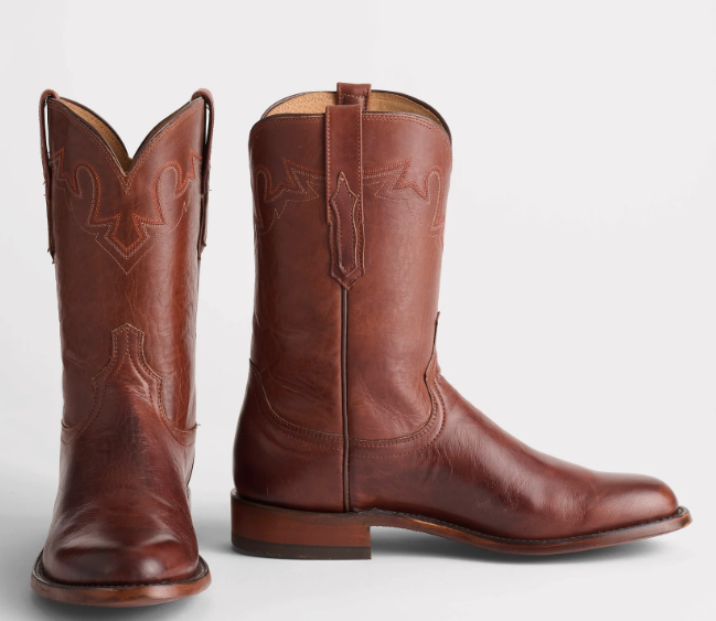 The Sunset Roper is fabricated from bold tones of supple Ranch Hand leather - a burnished blueprint for the quintessential Texas cowboy. Ready to dismount from any horse, the Sunset Roper allows effortless maneuverability when on the ground. Handmade in Texas.
