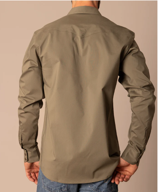 The Blackout features stretch-woven, moisture wicking Coolmax fabric. This piece is solid-colored and full of classic western details like matching pearl snap buttons down the front and closing the two chest pockets, a western yoke, and a collared neckline. The Blackout is the ultimate western work shirt.