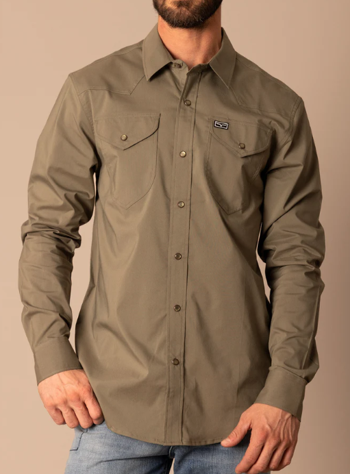 Men's Ariat Solid Khaki Twill Fitted Snap Shirt