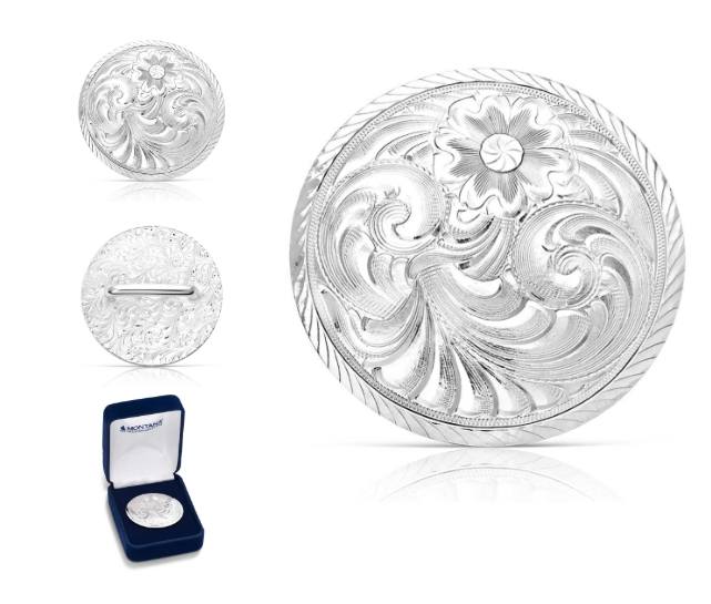 Stand out from the rest with the Classic Montana Scarf Slide. This scarf slide features floral silver engravings that create a shimmering look sure to turn heads and to dress up your favorite scarf.
