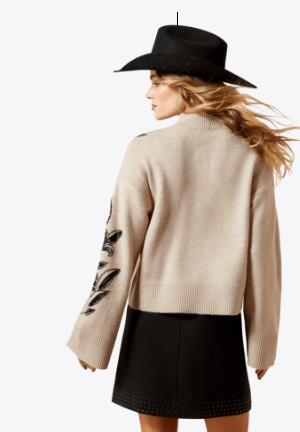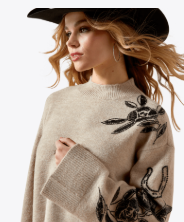 She's perfect for the Holidays - a bit of sparkly with floral sequin embellishments, bell sleeves and relaxed fit.