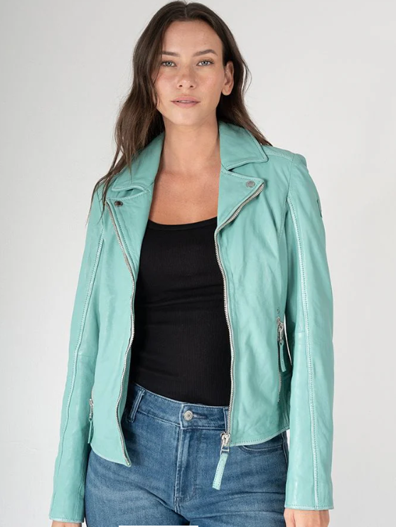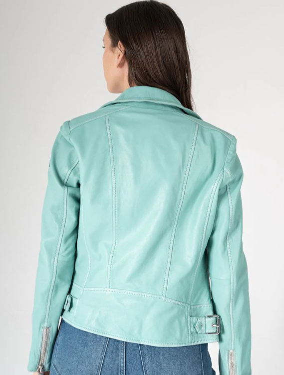 Women's Mauritius Louzia Aqua Lambskin Moto Jacket