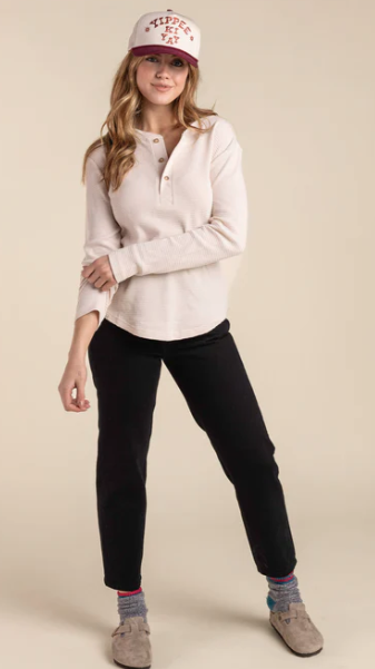 The Maven is our take on the classic henley fit in a custom waffle. Fit to be easy going and flattering, this staple is good for layering or making a simple statement piece.