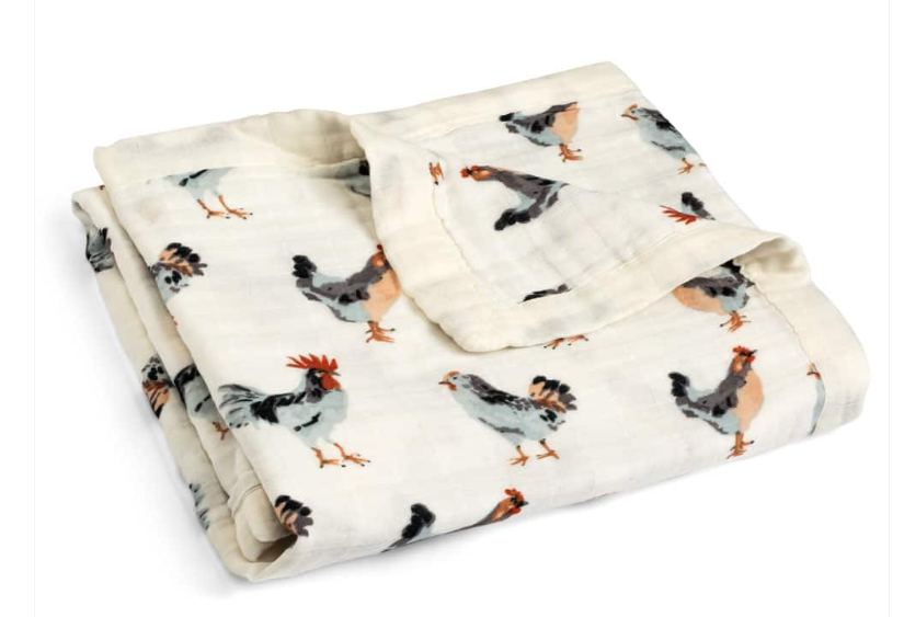 The ultimate in comfort, our generously sized Big Lovey muslin blanket in the Chicken print allows for extra snuggles and cuddles.