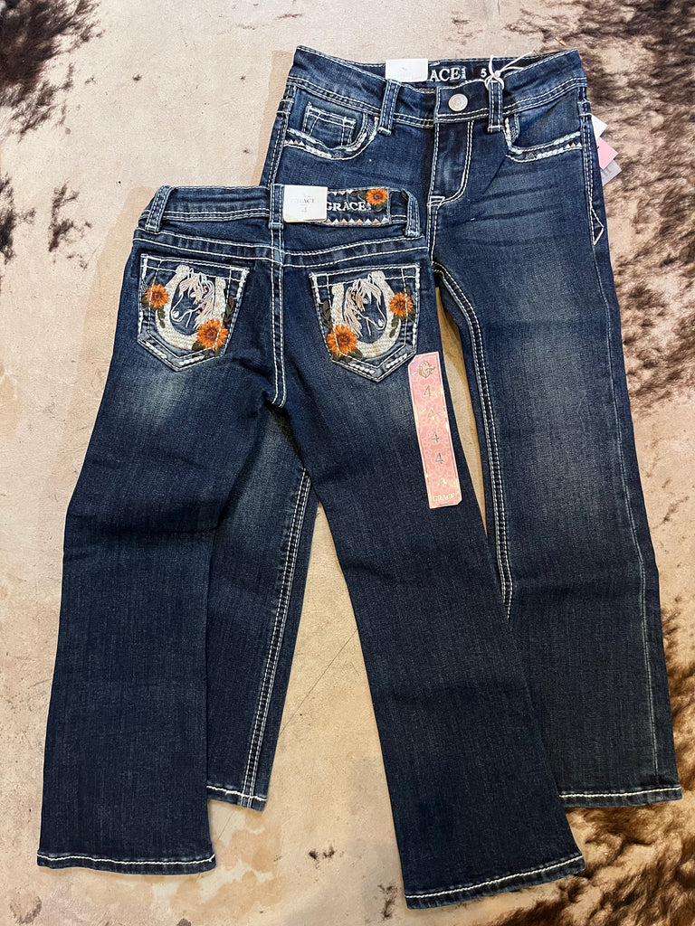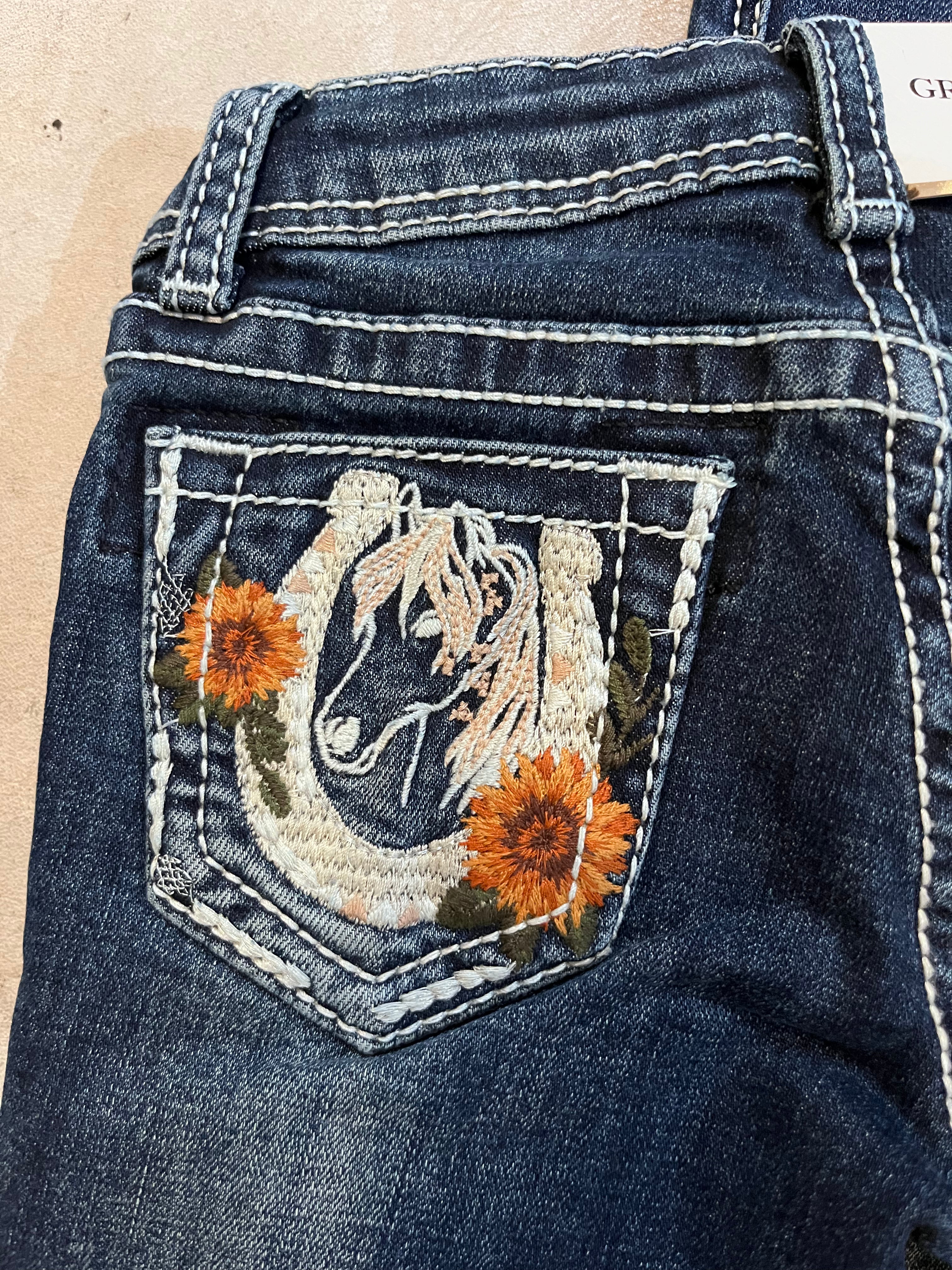 Grace in LA Girls Embroidered Horse Pocket Jeans