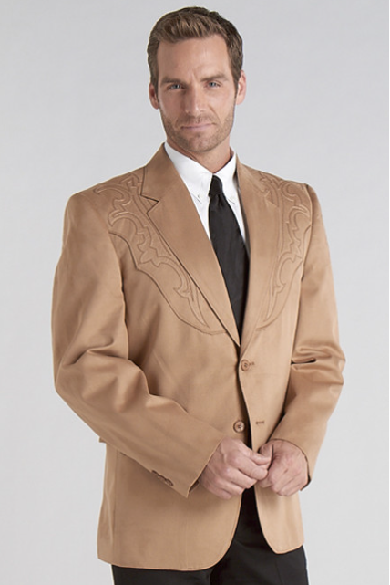 Men's Galveston Tan Embroidered MicroSuede Sport Coat