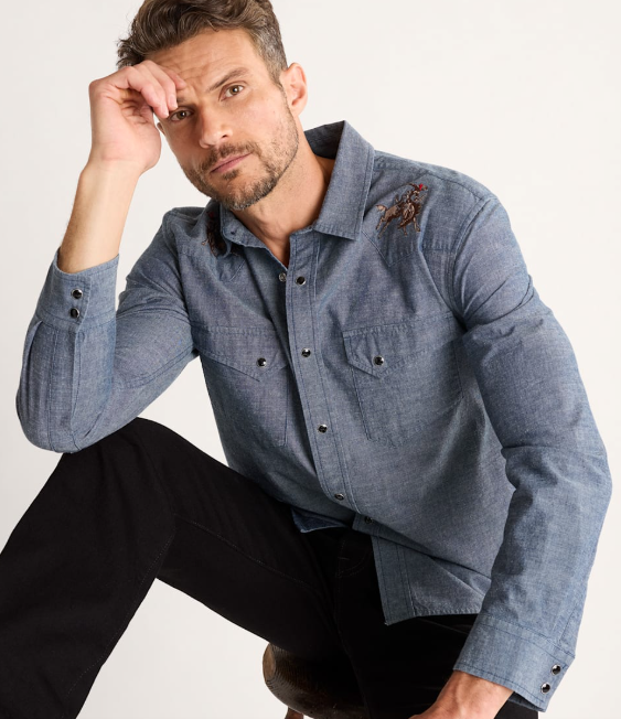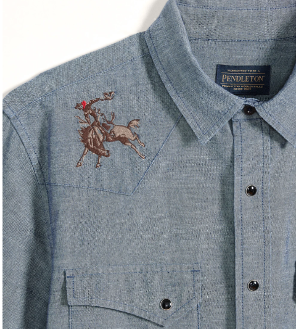 Pendleton Men's Gambler Western Embroidered Chambray Shirt