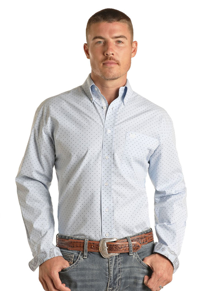 Rough Stock Men's Long Sleeve Powder Blue Snap Shirt