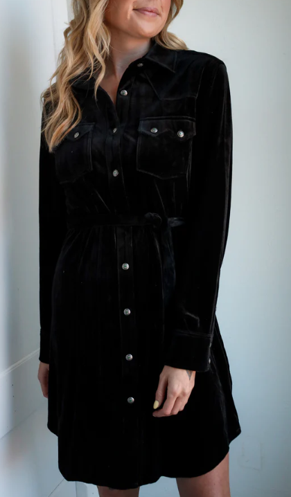 When the occasion calls for something special, Liza will fit the bill. Soft black velvet with the signature Tasha Polizzi concho buttons, self belt, two front pockets. Wear her as a dress or a duster - super versatile!
