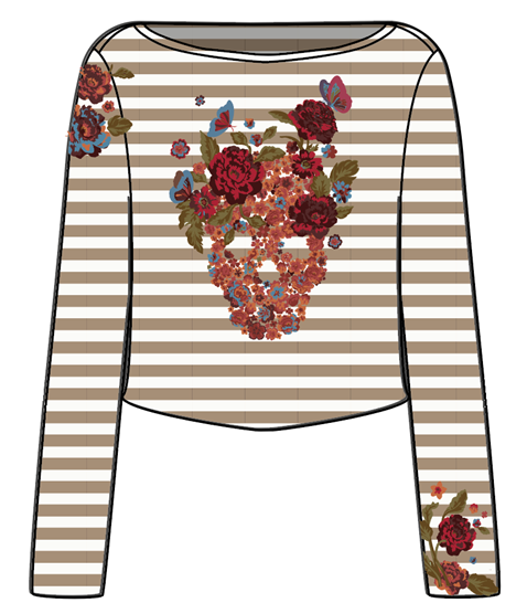 Skulls & Roses Embroidered Stipe Tee