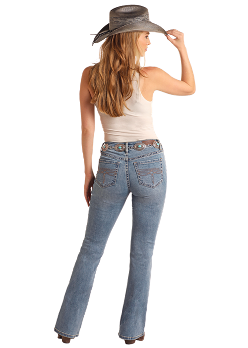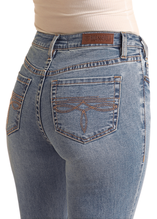 Rock & Roll Cowgirl Medium Wash Boot Stitch Bootcut Jean