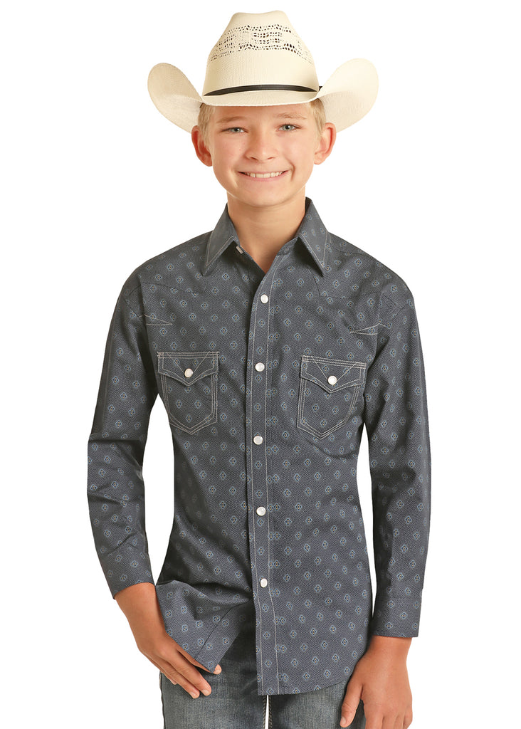 Boy's Rock and Roll Western Medallion Print Snap Shirt