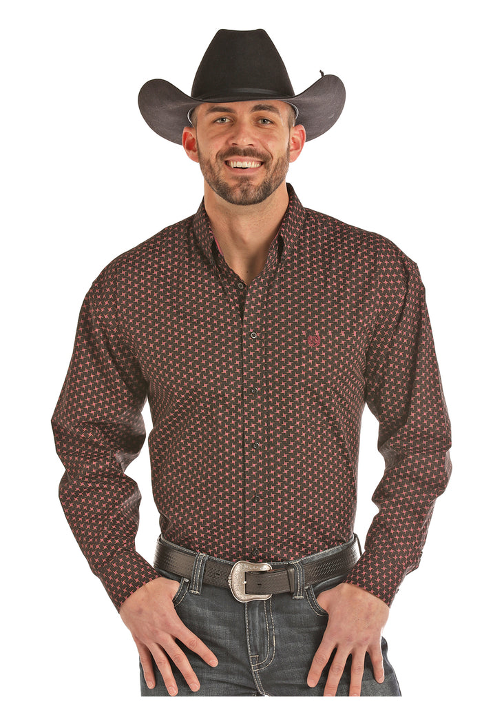Panhandle Men's Long Sleeve Snap Poplin Print Shirt